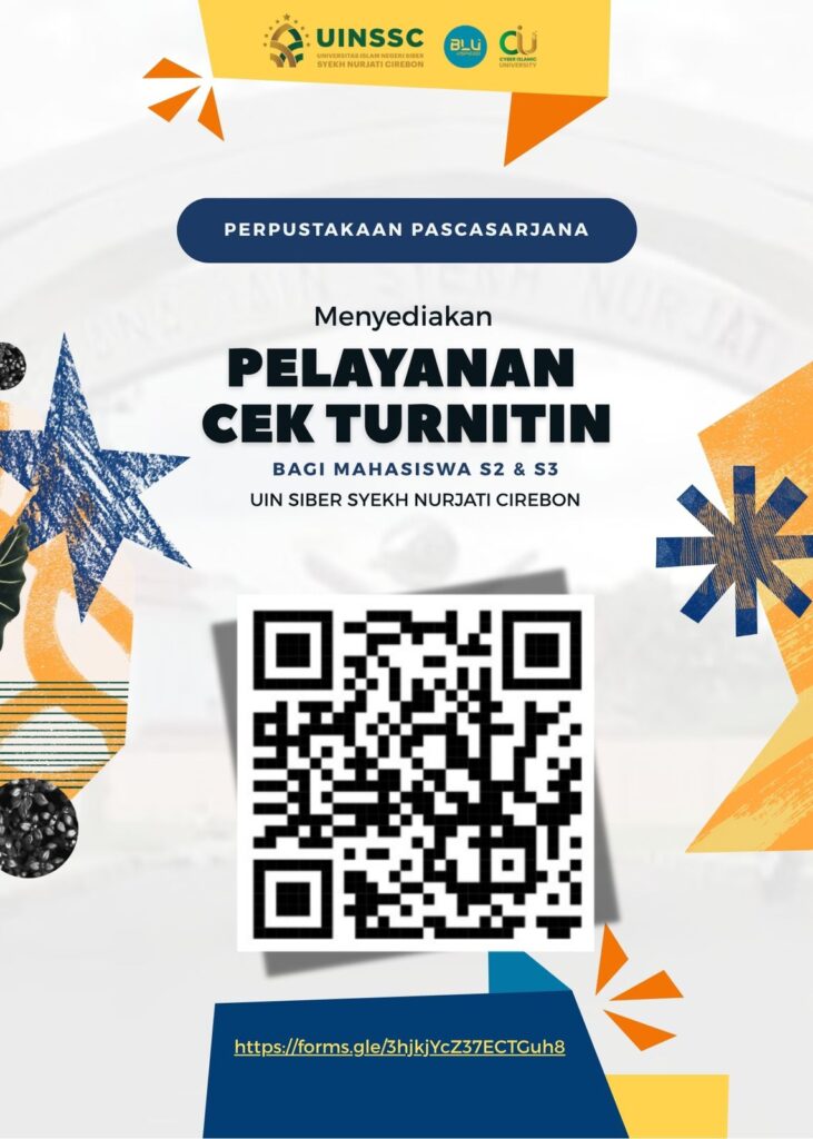 Info penting buat yang bingung cek turnitin! Perpustakaan Pascasarjana UIN SSC kini menyediakan layanan cek Turnitin khusus untuk mahasiswa S2/S3. Cek plagiarisme karya ilmiahmu dengan mudah melalui link berikut: (https://forms.gle/3hjkjYcZ37ECTGuh8) atau scan kode QR di atas. 💻✨
